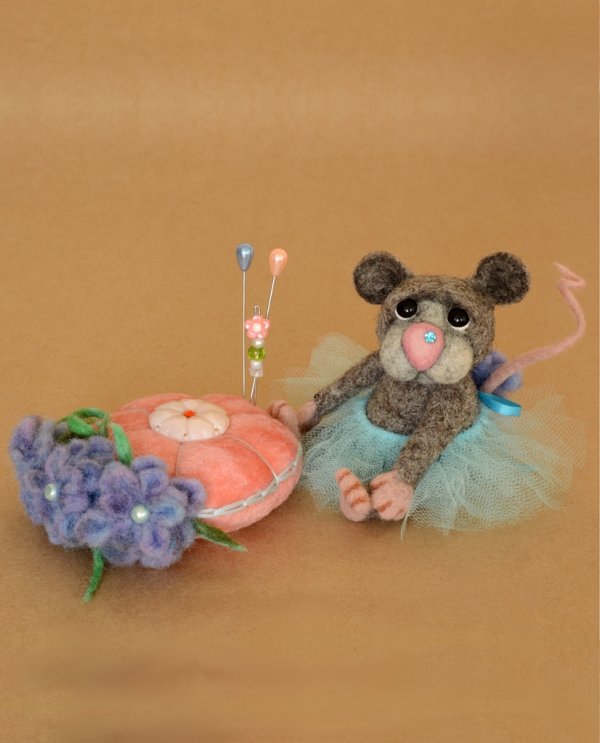 Her tutu, pin cushion and flowers have been designed and made by me. You can visit my website for more information. Ms. Kitty is the last needle felted creation I will be making for awhile as I direct my focus on mohair bears. I hope you like her. :rose: