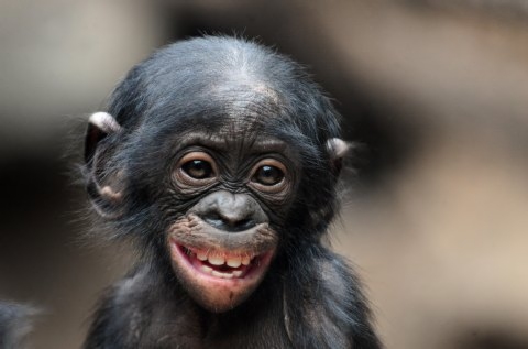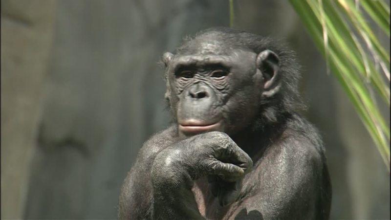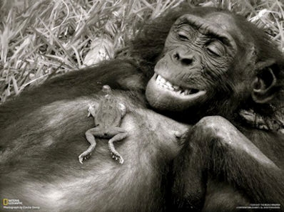 Bonobo and toad friend. The bonobo is the human's closest relative. I've seen people that look a lot like him.
