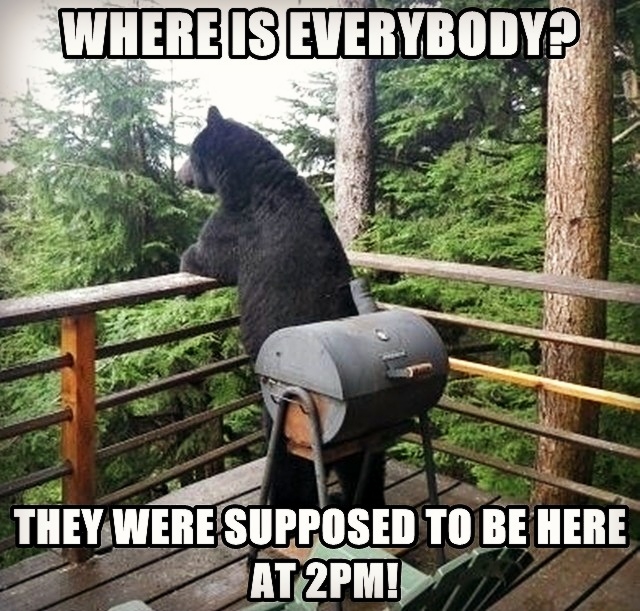 bear_grin  bear_grin  bear_grin  Don't you hate it when people show up late for your BBQ?   bear_tongue