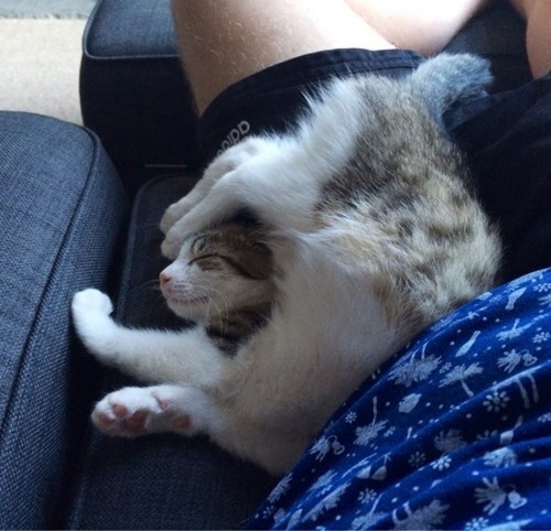 Kitty is heels over head . . . . . . . . .