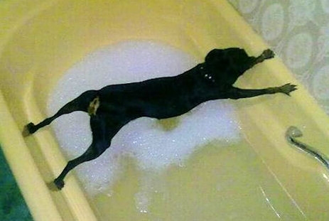 Even though Saturday night is coming up, this dog 'don't need no stinkin' bath'!!
