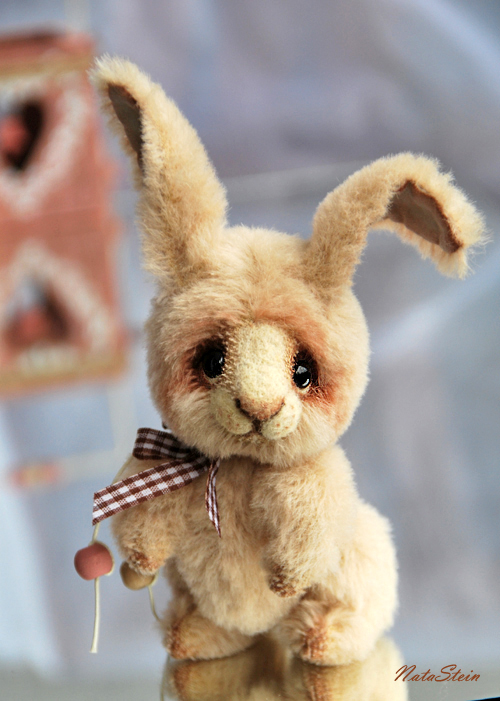 Milenok has black glass eyes and is filled with wool and steel granules.