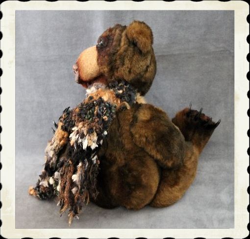 Ragnar is a 18" OOAK imported grey tipped Tissavel fur realistic grizzly bear. He weighs close to 3 pounds. German glass eyes hand painted copper brown. Epoxy clay eyelids, nose and tongue.