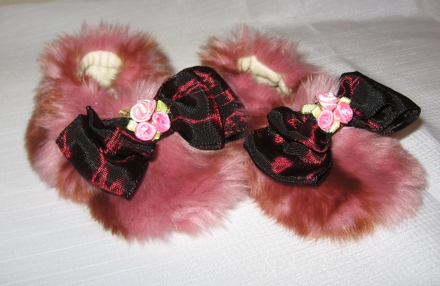 Happy Holidays to everyone. I haven't been making many bears lately because frankly, mine just are not selling. But I am still sewing. I'm using some left over fur and ultra suede to make baby shoes and slippers. It's so much fun. Here are a few pictures.
