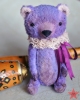 Small violet teddy bear in vintage lace collar 6" tall