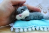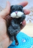 Unique teacup bear / shrunken fiber wool / felted crochet artist doll