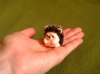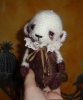 Fiber art, 'shrunken' wool spotted hare doll / miniature softie rabbit