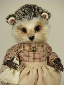 Inspired of Tale by Beatrix Potter I made this person . Uchti-tuchti an “excellent clear-starcher" . She is 10", made of white alpaca (tummy) and “hedgenhog" mohair. Fingers are movable. Her clothing is made specifically for Uchti-tuchti, on the buttons, can be removed.