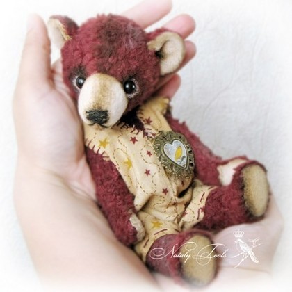 My dear friends, let me to introduce my teddy bear, his name is Ptashek, he just 8 inches in height and sewn from vittage soviet plush (handpainted by me), stuffed with wood wool, is very nice in hands! available.
