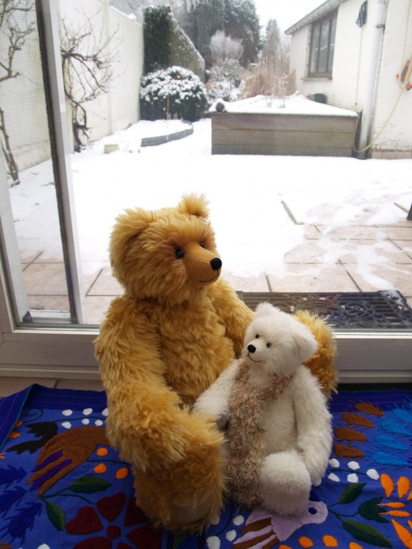 This big chap and his little friend ("Piccadilly" & "Twinkle", both made by Marilyn Lambert - Barling Bears) were the two first bears I adopted from Marilyn.  The adoption didn't go very smoothly, because it was just before Christmas time and it was the first time Marilyn's bears were to travel overseas.