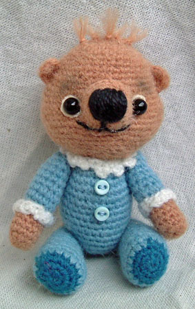 Here is my latest little baby from the amigurumi world. His name is Kisho, which means 'the one who knows his own mind'. A mischievous little guy in jammies.
