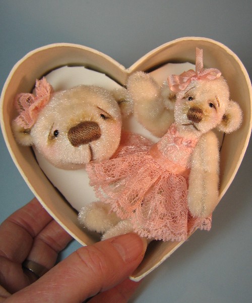 I've just finally finished my first bear this year (first in quite some time actually!) It's a two in one set with a regular mini head and an anime head, a special order for a customer. 3 1/2" tall with the regular head and 4" tall with the anime head.