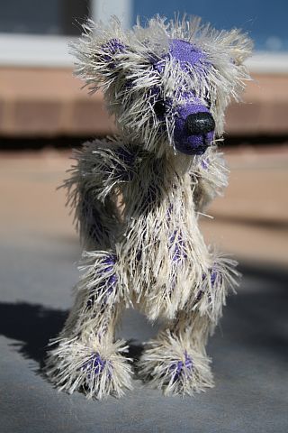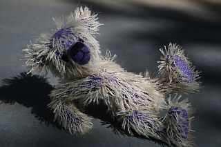 A 'from scratch' design that looks like I wanted it to look. I am pleased with it but would welcome comments - the photography isn't the best and I apologise for that. This is 'a bear with 'tude'. Made out of string mohair which is actually a deep purple but looks blue in the photo. He has armature in the arms.